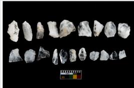 | Description / विवरण | There are n-20 of intact flake cores made up of Quartz. Some of them have bulge of percussion and some are flat flakes. |