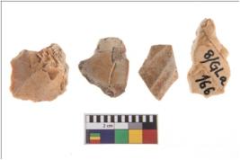 | Description / विवरण | Four worked flakes, some are irregular whereas some are tapering at one end. Most of them are having sharp edges. |