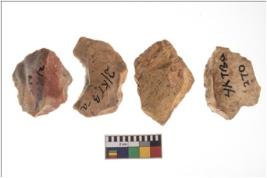 | Description / विवरण | Four worked flakes, some are uneven whereas some are tapering at one end. |
