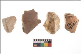 | Description / विवरण | Four worked flakes, some are uneven whereas some are tapering at one end. |