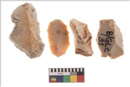 | Description / विवरण | Four worked flakes, some are irregular whereas some are tapering at one end. Most of them are having sharp edges. |