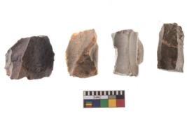 | Description / विवरण | Specimen of a fluted cores having several broad fluted marks indicating the detached blades from it. |
