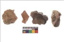 | Description / विवरण | Four worked flakes, some are irregular whereas some are tapering at one end. Most of them are having sharp edges. |