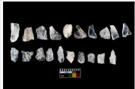 | Description / विवरण | There are n-20 of intact flake cores made up of Quartz. Some of them have bulge of percussion and some are flat flakes. |