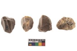 | Description / विवरण | Specimen of a fluted cores having several broad fluted marks indicating the detached blades from it. |
