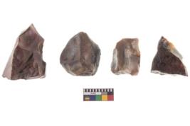 | Description / विवरण | A specimen of a fluted core having several broad fluted marks indicating the detached blades from it |