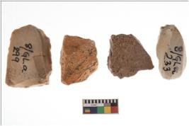 | Description / विवरण | Specimen of fluted cores showing impressions of blades removed from almost all the sides. |