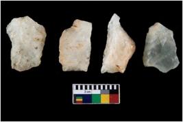 | Description / विवरण | Four flakes; most of them are tapering at one end with few having sharp edges. |
