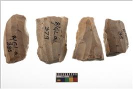 | Description / विवरण | Specimen of fluted cores showing impressions of blades removed from almost all the sides. |