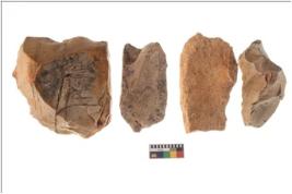 | Description / विवरण | Four worked flakes, some are uneven whereas some are tapering at one end. |