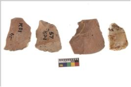 | Description / विवरण | Four worked flakes, some are uneven whereas some are tapering at one end. |