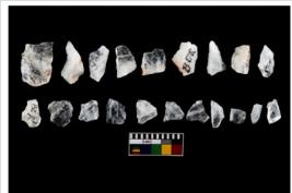 | Description / विवरण | There are n-20 of intact flake cores made up of Quartz. Some of them have bulge of percussion and some are flat flakes. |