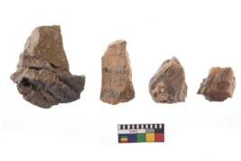 | Description / विवरण | Specimen of a fluted cores having several broad fluted marks indicating the detached blades from it. |