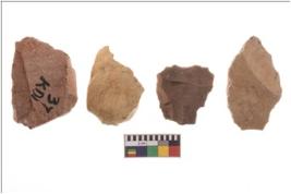 | Description / विवरण | Four worked flakes, some are uneven whereas some are tapering at one end. |