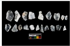 | Description / विवरण | There are n-20 of intact flake cores made up of Quartz. Some of them have bulge of percussion and some are flat flakes. |