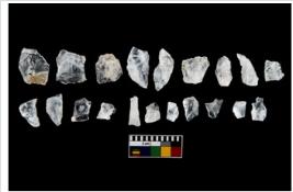 | Description / विवरण | There are n-20 of intact flake cores made up of Quartz. Some of them have bulge of percussion and some are flat flakes. |