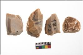 | Description / विवरण | Specimen of fluted cores showing impressions of blades removed from almost all the sides. |