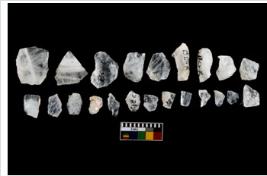 | Description / विवरण | There are n-20 of intact flake cores made up of Quartz. Some of them have bulge of percussion and some are flat flakes. |