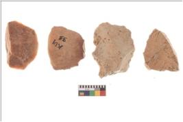 | Description / विवरण | Four worked flakes, some are uneven whereas some are tapering at one end. |