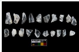 | Description / विवरण | There are n-20 of intact flake cores made up of Quartz. Some of them have bulge of percussion and some are flat flakes. |
