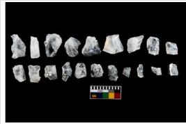 | Description / विवरण | There are n-20 of intact flake cores made up of Quartz. Some of them have bulge of percussion and some are flat flakes. |