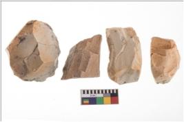 | Description / विवरण | Specimen of fluted cores showing impressions of blades removed from almost all the sides. |