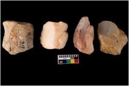 | Description / विवरण | Specimen of fluted cores showing impressions of blades removed from almost all the sides. |