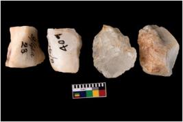 | Description / विवरण | Specimen of fluted cores showing impressions of blades removed from almost all the sides. |