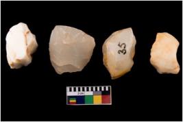 | Description / विवरण | Specimen of fluted cores showing impressions of blades removed from almost all the sides. |