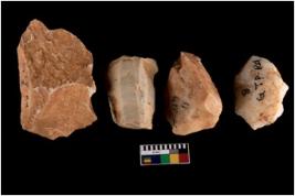 | Description / विवरण | Specimen of fluted cores showing impressions of blades removed from almost all the sides. |