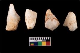 | Description / विवरण | Four worked flakes, some are tapering at one end. |
