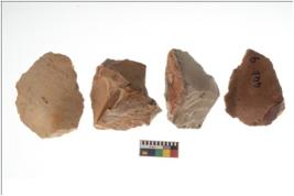| Description / विवरण | Four worked flakes, some are tapering at one end. Most of them are having sharp edges. |