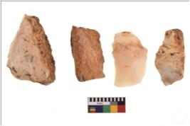 | Description / विवरण | Four flakes; most of them are tapering at one end with few having sharp edges. |
