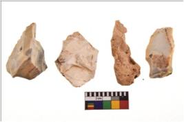 | Description / विवरण | Four flakes; most of them are tapering at one end with few having sharp edges. |