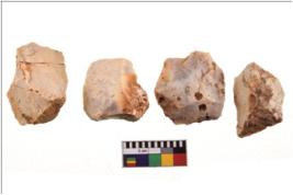 | Description / विवरण | Four flakes; most of them are tapering at one end with few having sharp edges. |