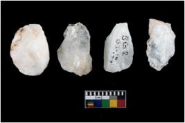 | Description / विवरण | A specimen of a fluted core having several broad fluted marks indicating the detached blades from it |