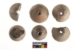 | Description / विवरण | Six Areca nut shaped beads with perforations. |