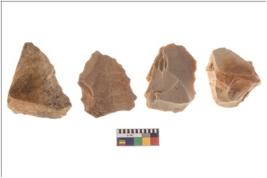 | Description / विवरण | Four worked flakes, some are tapering at one end. Most of them are having sharp edges. |