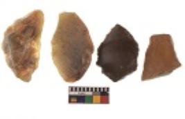 | Description / विवरण | There are n-4 of utilized flake cores. There are multidirectional irregular dominant scar pattern on both dorsal and ventral face of the cores. Some of them bulge of percussion and some are flat flake cores. |