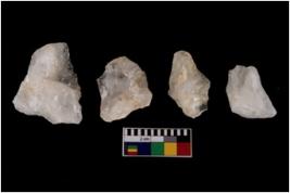 | Description / विवरण | Specimen of a cores with several broad fluted marks. The reverse bulb and platform can be seen. The flake scars are seen on all sides. |