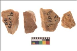 | Description / विवरण | Four worked flakes, most of them are uneven whereas some are tapering at one end. |