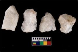 | Description / विवरण | Specimen of a cores with several broad fluted marks. The reverse bulb and platform can be seen. The flake scars are seen on all sides. |