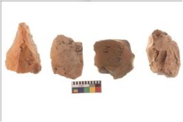 | Description / विवरण | Four worked flakes, some are tapering at one end. Most of them are having sharp edges. |