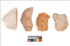 | Description / विवरण | Four flakes; most of them are tapering at one end with few having sharp edges. |