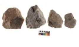 | Description / विवरण | There are n-4 of utilized flake cores. There are multidirectional irregular dominant scar pattern on both dorsal and ventral face of the cores. Some of them bulge of percussion and some are flat flake cores. |