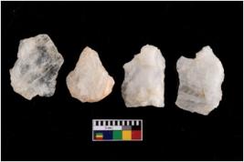 | Description / विवरण | Specimen of a cores with several broad fluted marks. The reverse bulb and platform can be seen. The flake scars are seen on all sides. |