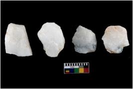| Description / विवरण | A specimen of a fluted core having several broad fluted marks indicating the detached blades from it |