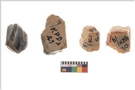| Description / विवरण | Specimen of fluted cores showing impressions of blades removed from almost all the sides. |
