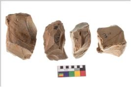| Description / विवरण | Specimen of fluted cores showing impressions of blades removed from almost all the sides. |