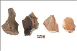 | Description / विवरण | Specimen of fluted cores showing impressions of blades removed from almost all the sides. |